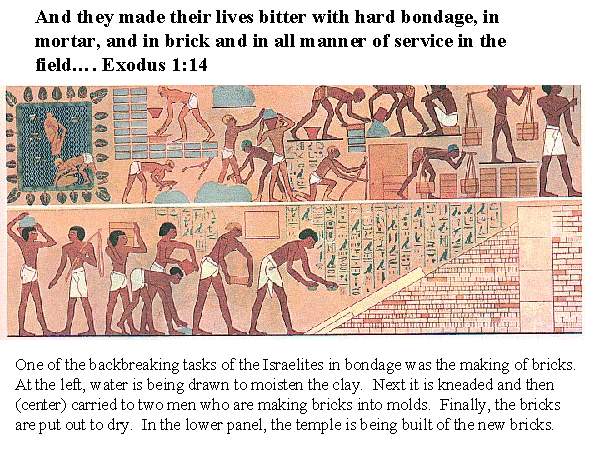 14/ And they made their lives bitter with hard bondage—in mortar, in brick, and in all manner of service in the field. All their service in which they made them serve was with rigor.