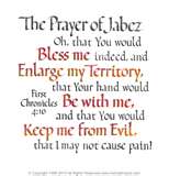 1st Chronicles 4:9, 10 KJV * 9/And Jabez was more honourable than his brethern: and his mother called his name Jabez, saying, Because I bare him with sorrow. 10/And Jabez called on the God of Israel, saying, Oh that thou wouldest bless me indeed, and enlarge my coast, and that thine hand might be with me, and that thou wouldest keep me from evil, that it may not grieve me! And God granted him that which he requested.