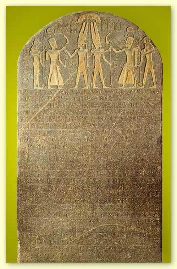 {Note: The Israel Stela also known as the Merneptah Stele is a slab of rock which was found in 1896 at Thebes, Egypt. The monument was found where it had once stood in ancient Egypt, at the temple that honored Pharaoh Merneptah. Some refer to the stone as the "Victory Stele" because it records the military campaigns and victories of Pharaoh Merneptah, the son of the mighty Ramesses II who reigned in Egypt around 1215 BC., during the time of the Judges in Israel. The writing on the stele is in hieroglyphs and very clearly mentions the name of Israel on it. Israel was considered by the Pharaoh of Egypt important enough to mention as a significant victory. The Hebrews had conquered the land of Canaan around 1400 B.C. The period of the Judges was a dark time in Israel's history because they had continually forsaken the Lord and served other gods, and there was continual turmoil in the land of Israel.